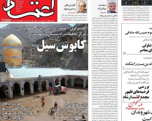 كما أشارت صحيفة "شرق" إلى هذه الصور والمقاطع، وانتقدت ضعف أداء المسؤولين في العاصمة طهران التي باتت مهددة من السيول، وعنونت بالقول: "العاصمة محاصرة بالسيول والمسؤولين الفاشلين".