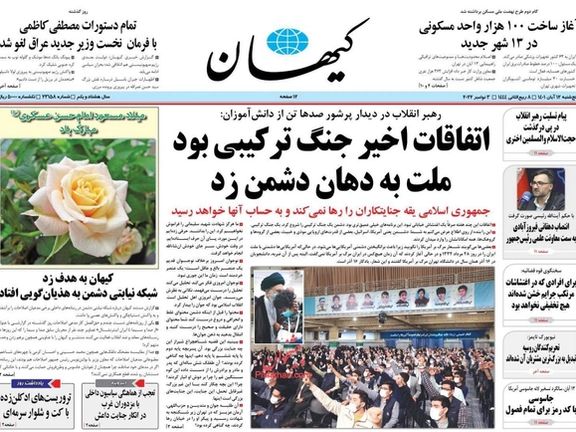 كانت تصريحات المرشد يوم أمس الأكثر اهتماما من جانب الصحف، والذي وصف الاحتجاجات فيها بأنها "حرب هجينة" تشن على إيران، ولا ينبغي الاكتفاء بوصفها "أعمال شغب" أو "اضطرابات"، زاعما أن "الشعب الإيراني قد أفشل خطط الأعداء".