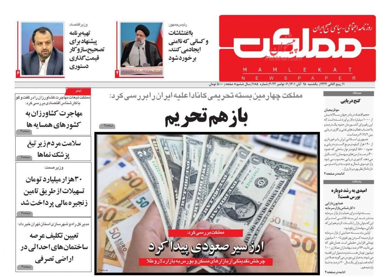 وفي صحف اليوم الأحد 6 نوفمبر (تشرين الثاني) 2022، دعا أنصار التيار الإصلاحي أو المحسوبون على هذا التيار بشكل صريح ومباشر إلى تغيير الدستور الإيراني لينسجم مع واقع إيران والظروف الجديدة التي طرأت على البلد والعالم، مؤكدين أن الدستور ما وضع ليكون أبديا.