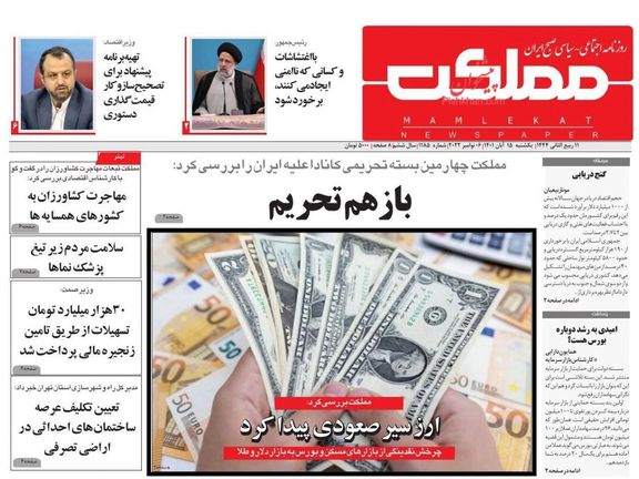 ولم تغفل الصحف المنتقدة لأداء الحكومة عما شهدته إيران من طفرة في أسعار الذهب والدولار في الأيام الأخيرة إذ شارف سعر الدولار على 37 ألف تومان بعد أن تم تداوله يوم أمس بسعر 36800 تومان. وعنونت خراسان حول هذه الأزمة وكتبت: "يوم ساخن في البورصة والدولار والذهب".