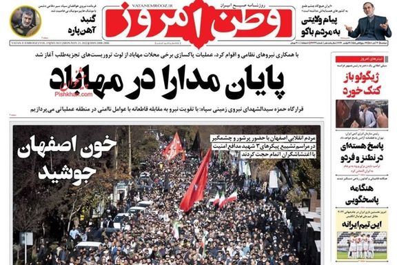 وفي آخر هذه التغطية المغرضة، رحبت صحيفة "وطن امروز" المقربة من الحرس الثوري بالقمع الشديد الذي تعرض له المحتجون في مدينة مهاباد غربي إيران، مخصصة مانشيت اليوم لهذا الموضوع، حيث كتبت بخط عريض: "نهاية المداراة في مهاباد"، موضحة أنه كان ينبغي على الأمن اللجوء إلى هذه الأساليب منذ وقت مبكر، كما كتبت صحيفة "سياست روز" الأصولية حول الموضوع وادعت أن "الفوضى والاضطرابات قد انتهت في مدينة مهاباد".