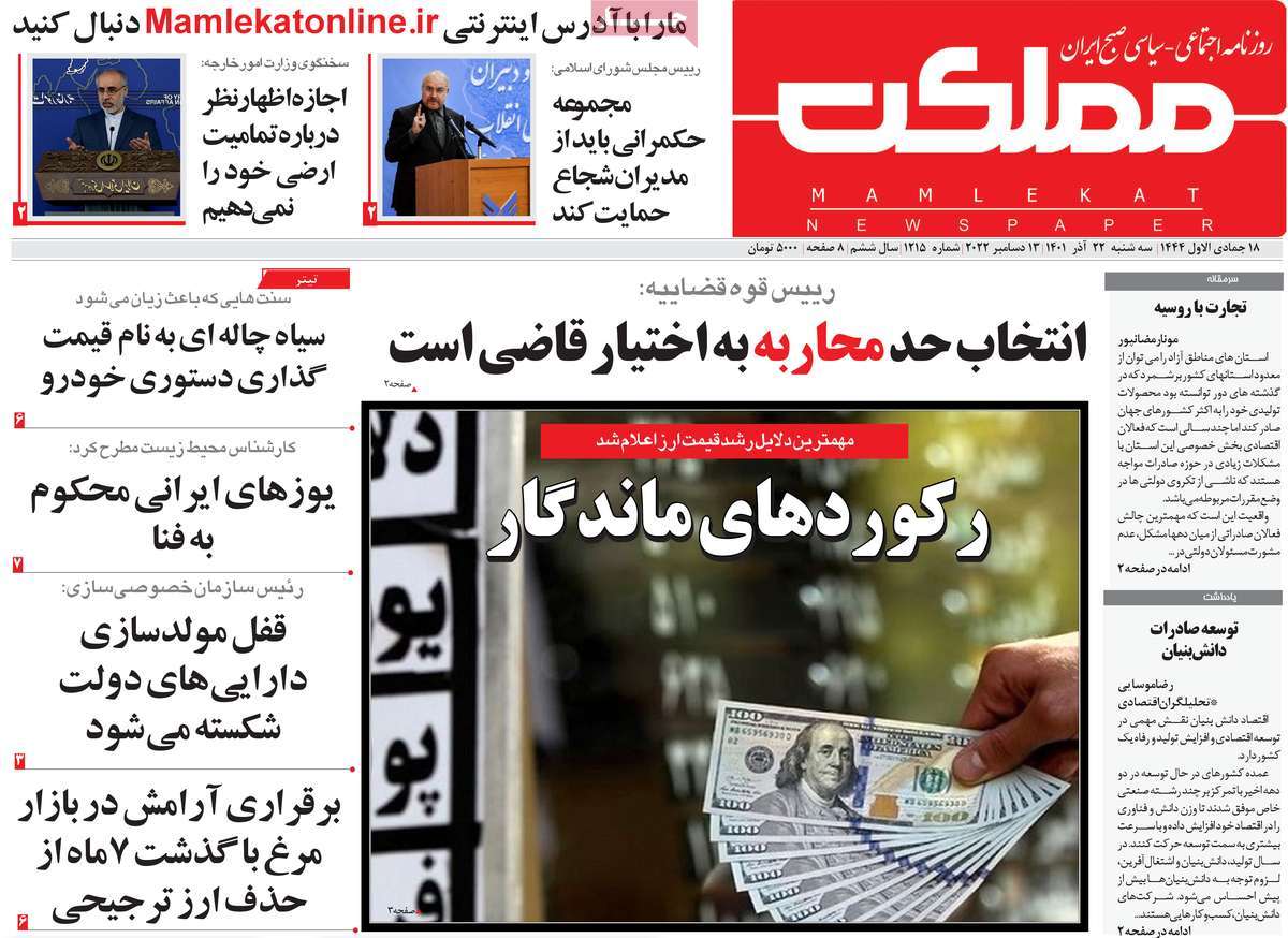 على صعيد اقتصادي لفتت صحيفة "دنياي اقتصاد" إلى الارتفاع الكبير في الأسعار في قطاع السكن في العاصمة طهران، وقالت إن سعر المتر الواحد في طهران يتم بيعه حاليا بما يقارب 48 مليون تومان، وهو رقم كبير للغاية يكشف حجم المأساة التي وصلت إليها الأوضاع الاقتصادية في البلاد.