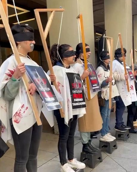 وتجمع عدد من الإيرانيين المقيمين في أستراليا أمام سفارة إيران في كانبرا، عاصمة أستراليا، في 15 ديسمبر، ردًا على إعدام اثنين من المتظاهرين، وكذلك السلوك العنيف للقوات الأمنية مع المتظاهرين الإيرانيين.