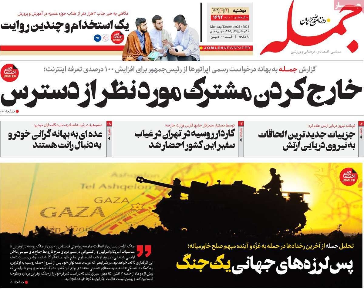 على صعيد الحرب في غزة وانعكاساتها الدولية والإقليمية دافعت صحف النظام، مثل صحيفة "كيهان" التابعة للمرشد علي خامنئي، عن إجراءات جماعة الحوثي، وأشارت إلى تشكيل قوة دولية لحماية الملاحة البحرية في البحر الأحمر بحضور أميركي قوي، وعنونت في مانشيتها نقلا عن الحوثيين: "اليمنيون: سنحول البحر الأحمر إلى مقبرة لسفنكم"، مدافعة عن هذه الأعمال التي اعتبرتها معظم دول العالم بأنها تهديد للاستقرار العالمي.