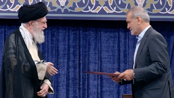 أقيمت مراسم تنصيب مسعود بزشكيان رئيسًا جديدًا لإيران من قِبل المرشد، علي خامنئي، قبل يومين من أداء اليمين الدستورية في البرلمان الإيراني.