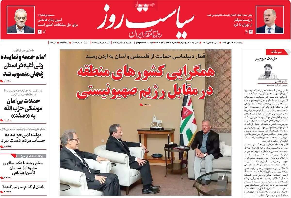 صحيفة "هم ميهن" الإصلاحية أشارت إلى أن إسرائيل بدأت تعمل على تهيئة الرأي العام العالمي لشن هجمات على إيران، من خلال الادعاء بأن طهران ضالعة في هجوم السابع من أكتوبر.