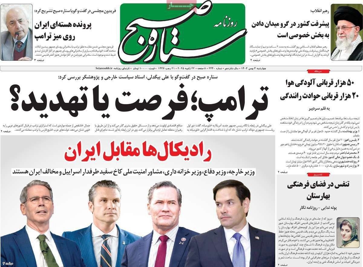 ووصفت الصحيفة الرئيس الحالي، مسعود بزشكيان، بأنه "آخر فرصة" للنظام أمام الأزمات المتزايدة؛ نتيجة السياسات القهرية، التي سلكها البعض في إيران، خلال العقود والسنوات الماضية.