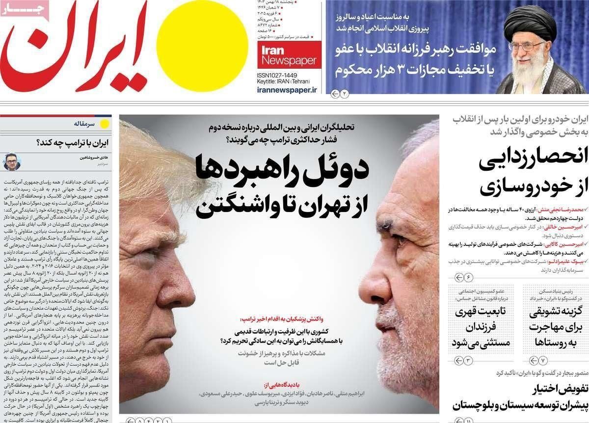 من جانبه قال الكاتب والدبلوماسي الإيراني السابق عبد الرضا فرجي راد في مقال له بالصحيفة أيضا، إن ترامب ترك الباب مفتوحا للتفاوض والتفاهم مع إيران لكنه رفع بجانبه عصا العقوبات، معتقدا أن العقوبات ضد طهران ستكون صعبة وأنه بحاجة لإظهار القوة وتخويف طهران من مغبة عدم التوصل لاتفاق مع إدارته.