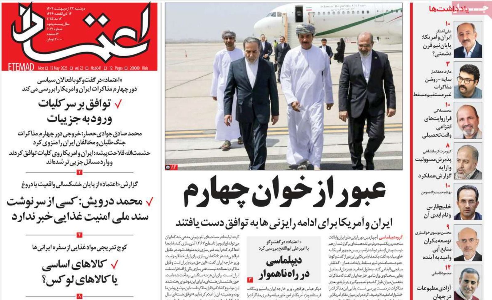 تناقلت الصحف الإيرانية الصادرة اليوم الاثنين 12 مايو (أيار) عددًا من الموضوعات، على رأسها ملف التفاوض بين طهران وواشنطن، والاتفاق على عقد جولة خامسة من المفاوضات، والعلاقة بين الفقر التعليمي والمادي للأسر، وزيادة أعداد وفيات العمال لغياب الاهتمام بوسائل السلامة والوقاية.