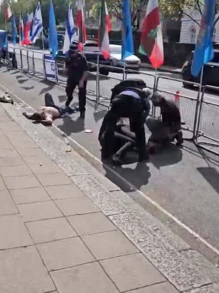 أعلنت الشرطة البريطانية، اليوم الجمعة، اعتقال 8 أشخاص إثر اشتباكات بين متظاهرين مؤيدين ومعارضين لإيران قرب السفارة الإيرانية. وأُلقي القبض على 7 منهم للاشتباه في تسببهم بأذىً جسدي خطير، بينما أُلقي القبض على شخص واحد للاشتباه في انتهاكه حظرًا مؤقتًا للتجمعات الاحتجاجية.