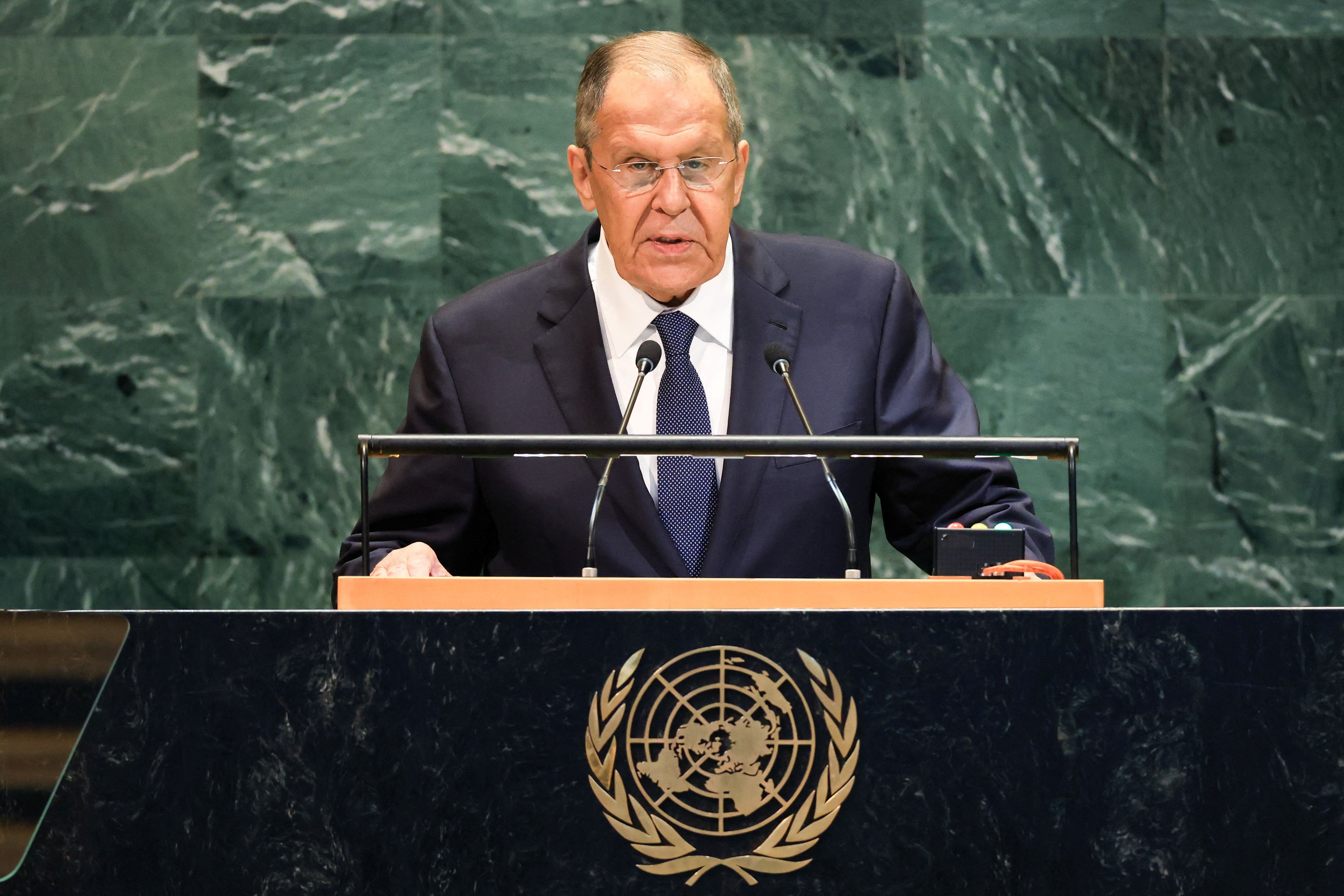 وقال لافروف، في كلمته أمام الجمعية العامة للأمم المتحدة: "أمس في مجلس الأمن، رفض الغرب الاقتراح المنطقي للصين وروسيا بتمديد اتفاق 2015 بشأن البرنامج النووي الإيراني بهدف إتاحة الفرصة للدبلوماسية".
