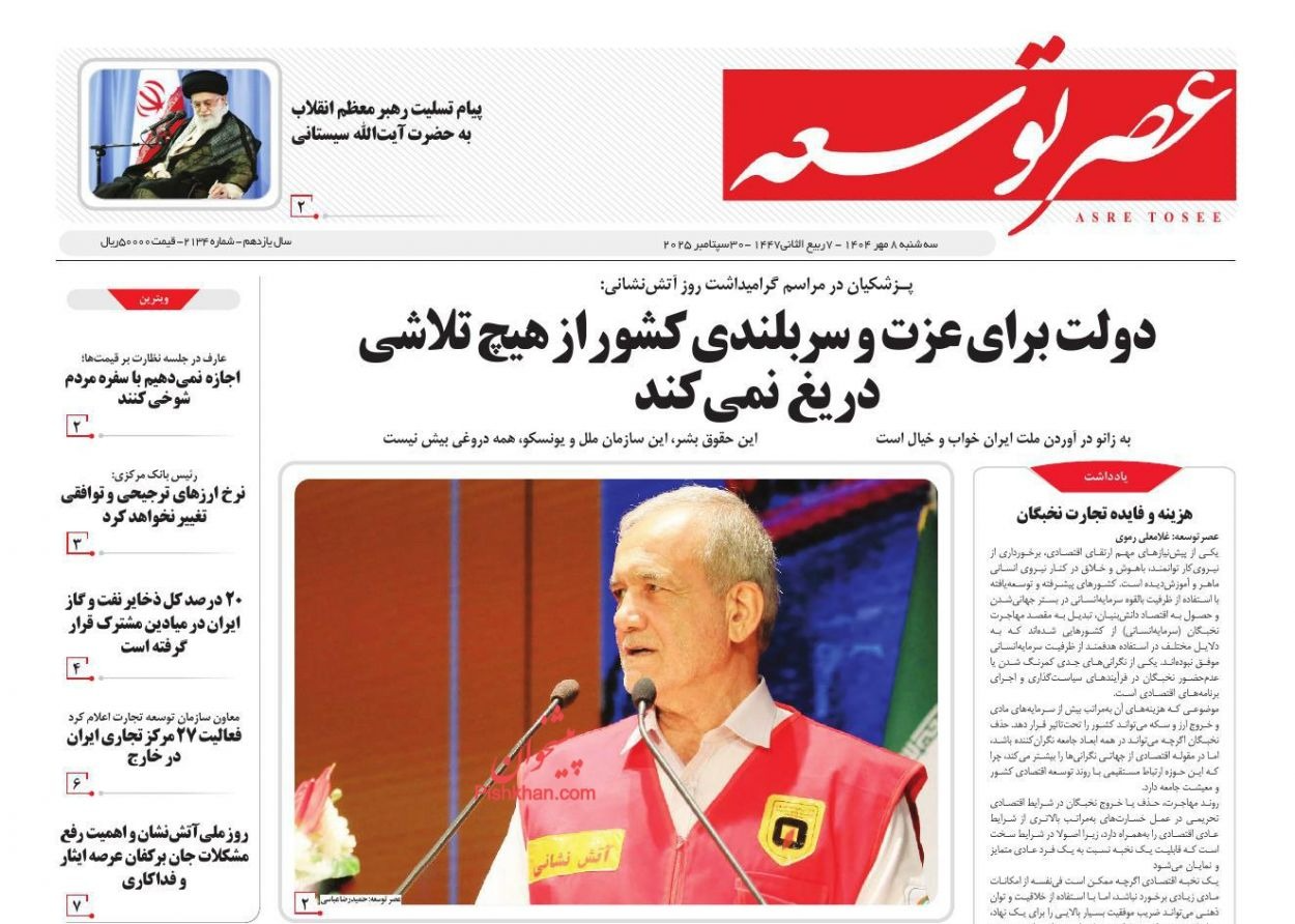 ووفق صحيفة "أبرار" الأصولية، فقد توجه الرئيس مسعود پزشكيان إلى نيويورك، للمشاركة في الجمعية العامة للأمم المتحدة بوفد مرافق محدود بشكل غير مسبوق، وذلك بسبب القيود الصارمة التي فرضتها الولايات المتحدة على منح التأشيرات والتنقل.
