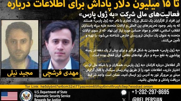 أعلنت الخارجية الأميركية عن مكافأة 15 مليون دولار لمن يدلي بمعلومات تؤدي إلى كشف أو تعطيل شبكات مرتبطة بالإيرانيين مهدي فرشجي ومجيد نيلي، اللذين يُتهمان بتأمين "تكنولوجيا حساسة تستخدمها الصناعات العسكرية" التابعة للحرس الثوري.