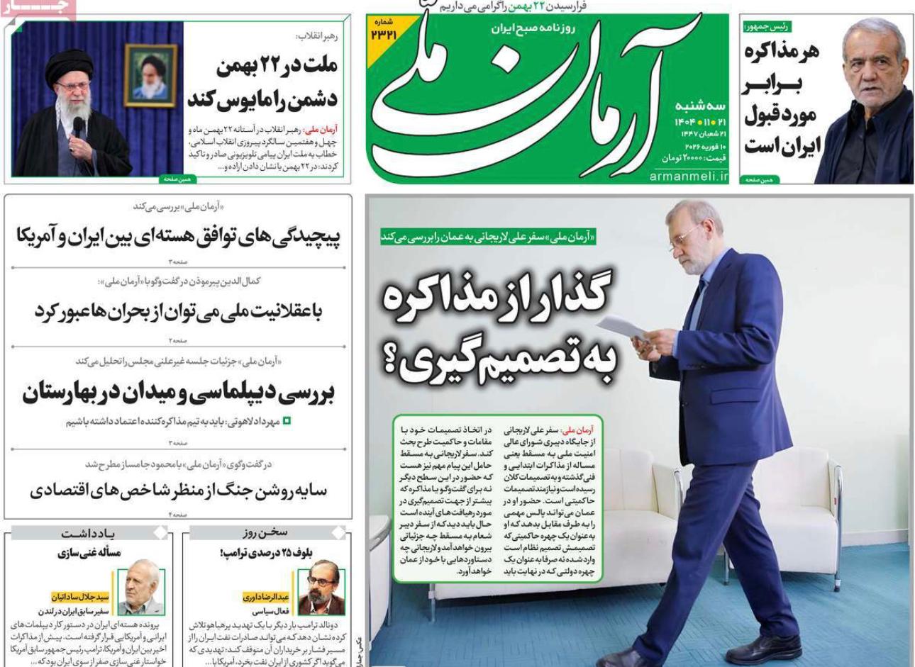 وربطت صحيفة "آرمان ملي" الإصلاحية، أزمة التفاوض بغياب الضمانات الأمريكية، وأكدت أن نجاح الحوار الوشيك مرهون بتغيير سلوك واشنطن الفعلي وتوظيف الردع العسكري كركيزة لحماية المسار الدبلوماسي.