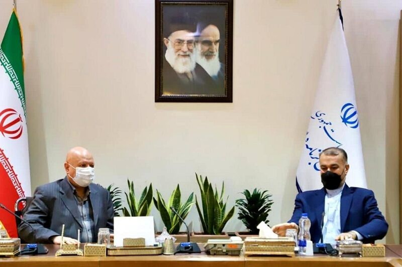 Mirkazemi (L) and foreign minister Amir-Abdollahian meeting over Iran's new budget. November 30, 2021