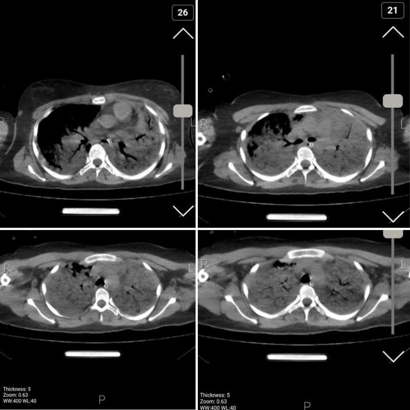 Images of her chest show bilateral diffuse alveolar hemorrhage and damage due to aspiration pneumonia, secretion retention and superimposed infection. Doctors say the results are compatible with acute respiratory distress syndrome due to brain trauma.