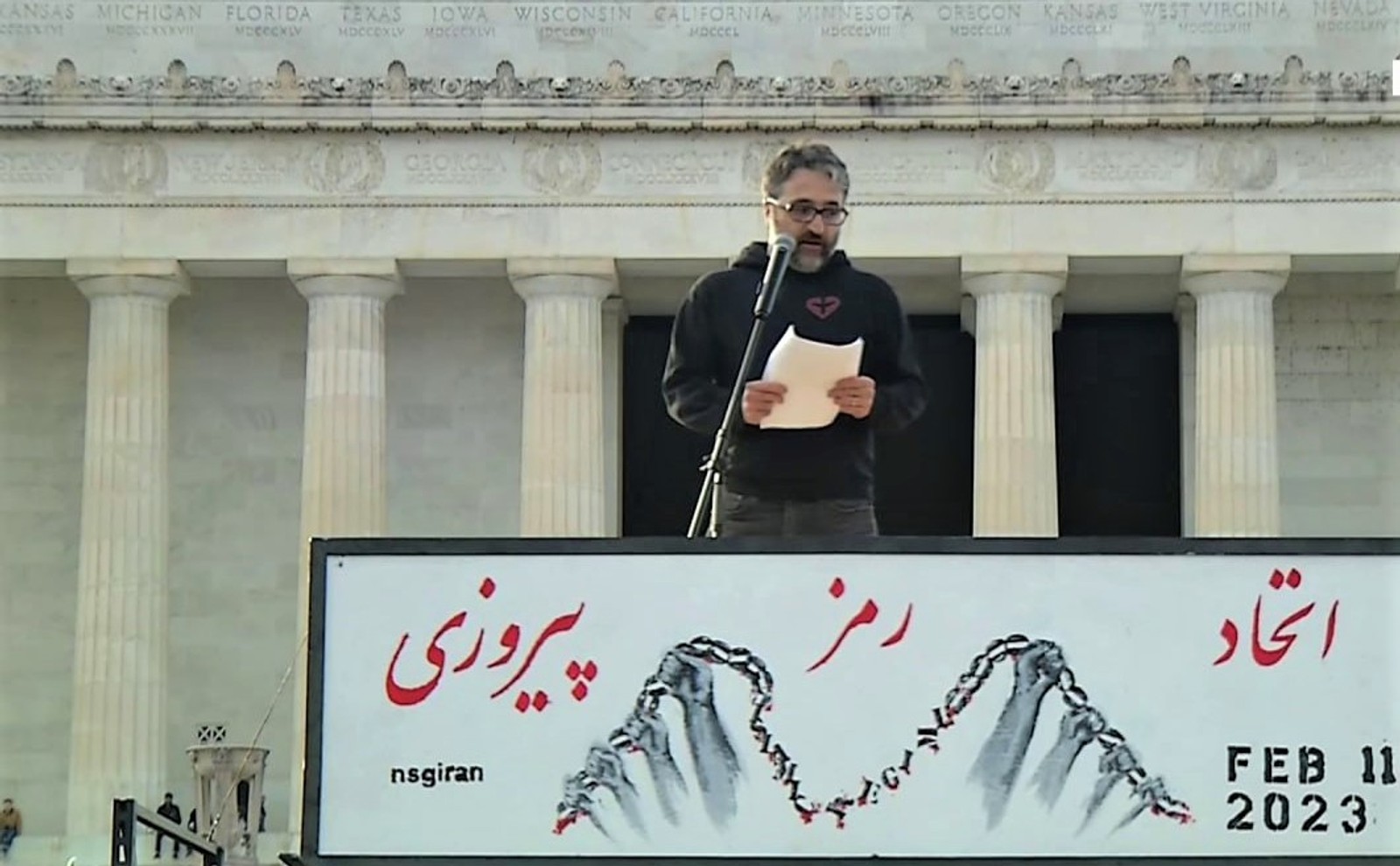 Canada-based activist Hamed Esmaeilion speaking during the rally Washington DC (February 11, 2023)