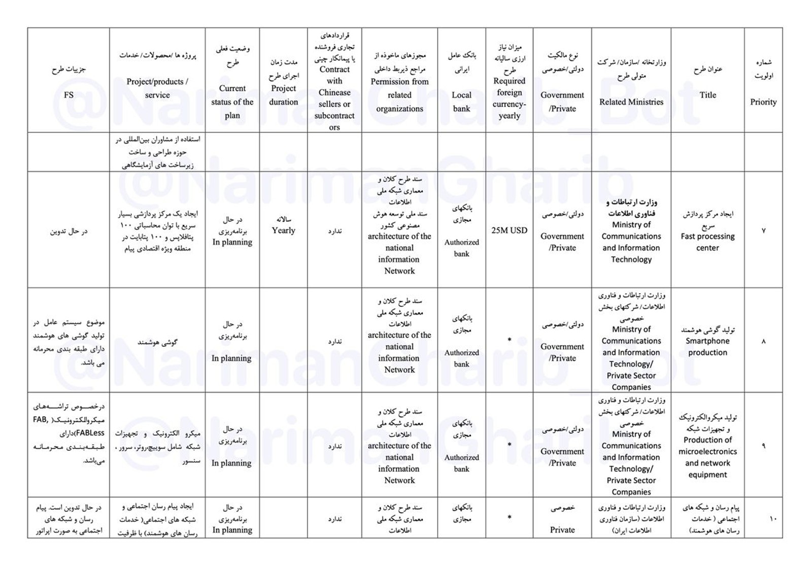 London-based Iranian-British internet security expert and cyber espionage investigator Nariman Gharib released a list of contracts signed between the Islamic Republic's Ministry of Information and Communications Technology and Chinese companies.