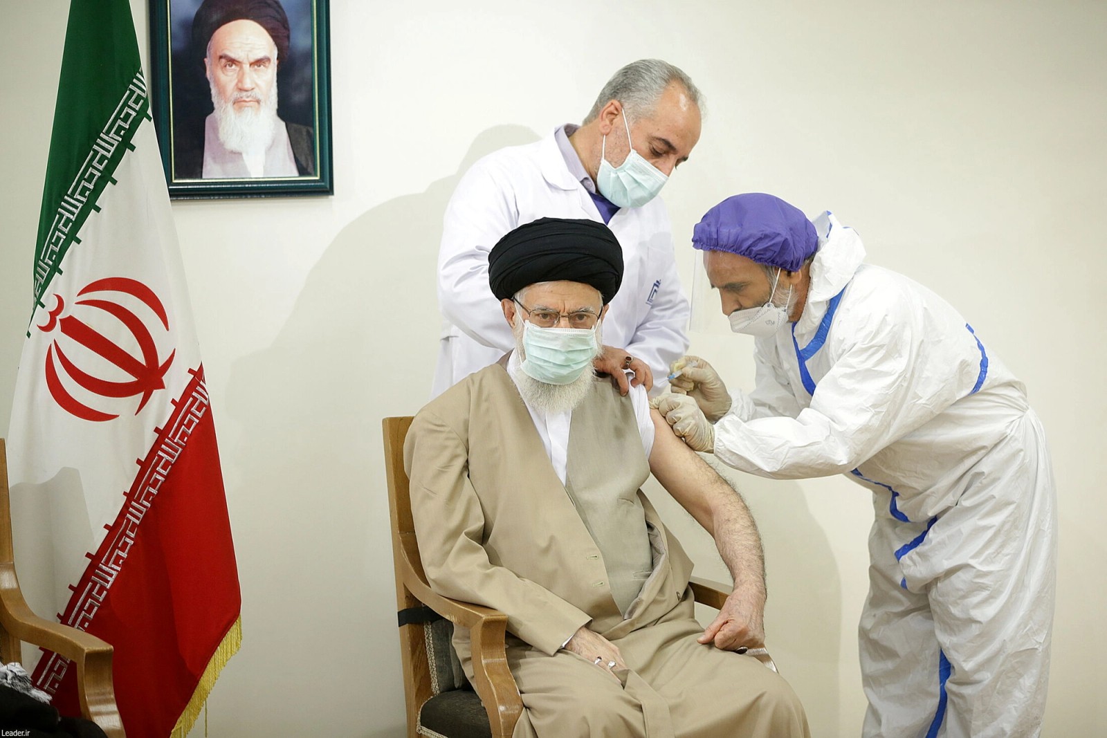 Iran's Supreme Leader Ali Khamenei receives his first dose of the COVIran Barakat vaccine, developed by a state-affiliated conglomerate, in Tehran, Iran June 25, 2021.
