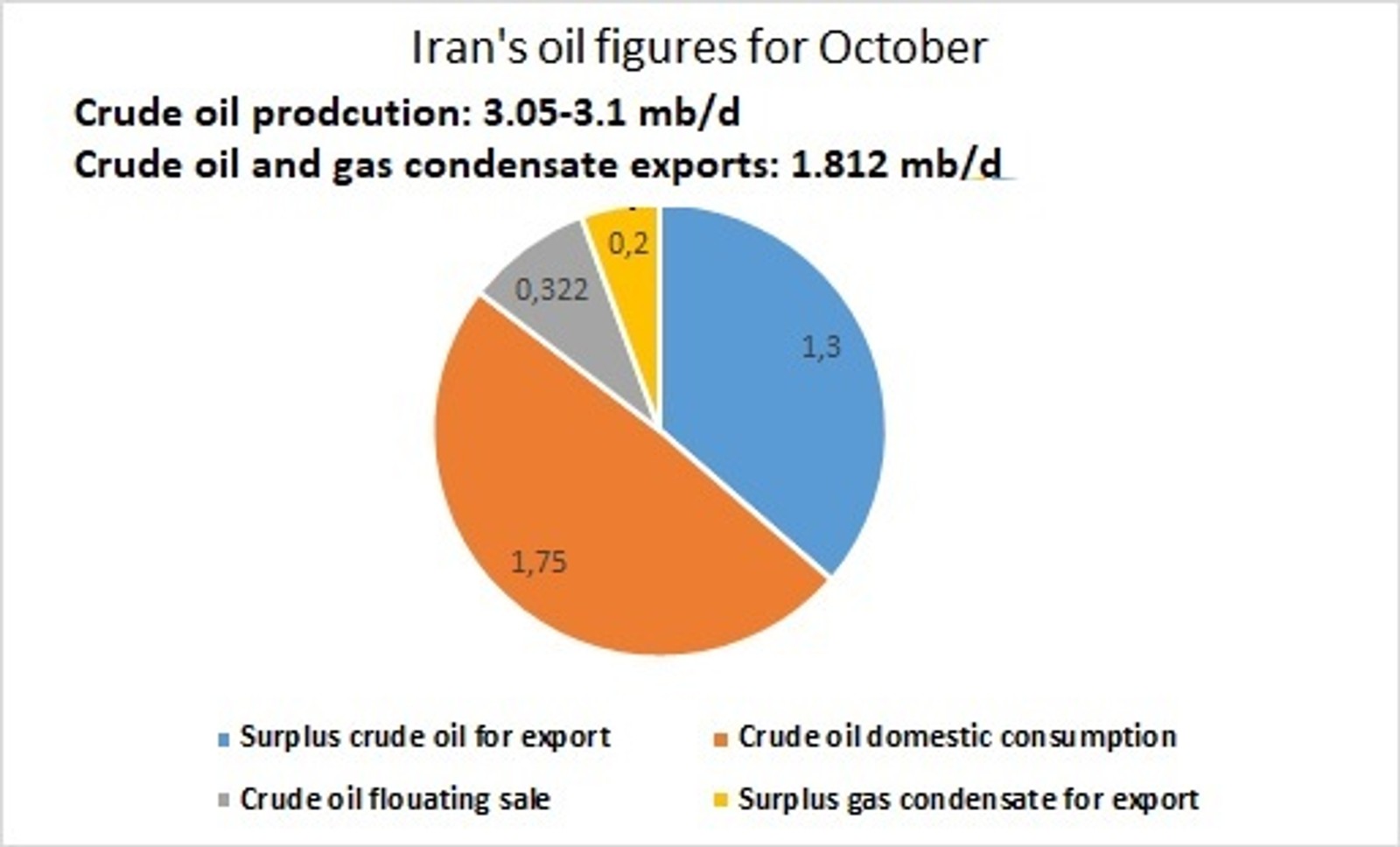 Therefore, Iran had only 1.5 mb/d of surplus crude oil and gas condensate for export in October.