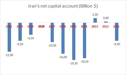 Central Bank statistics show that, considering oil, non-oil and service trade, Iran's net capital account was a negative $15 billion last Iranian year (March 2022-March 2023). In other words, the outflow of foreign currencies from the country was $15 billion more than the inflow of foreign currencies.