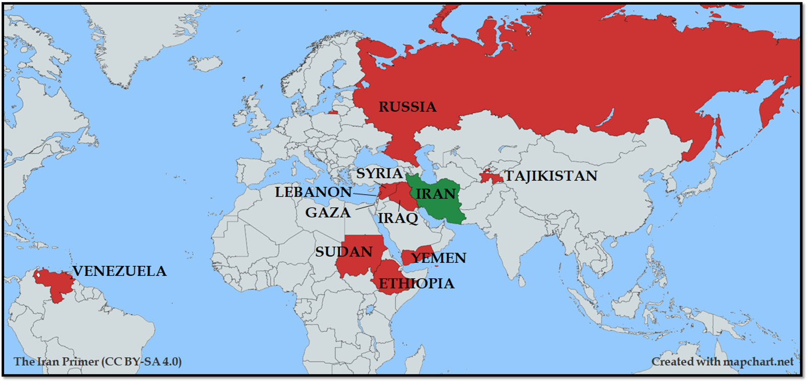 Export destinations of Iranian drones (Map by The United States Institute of Peace via the Iran Primer)