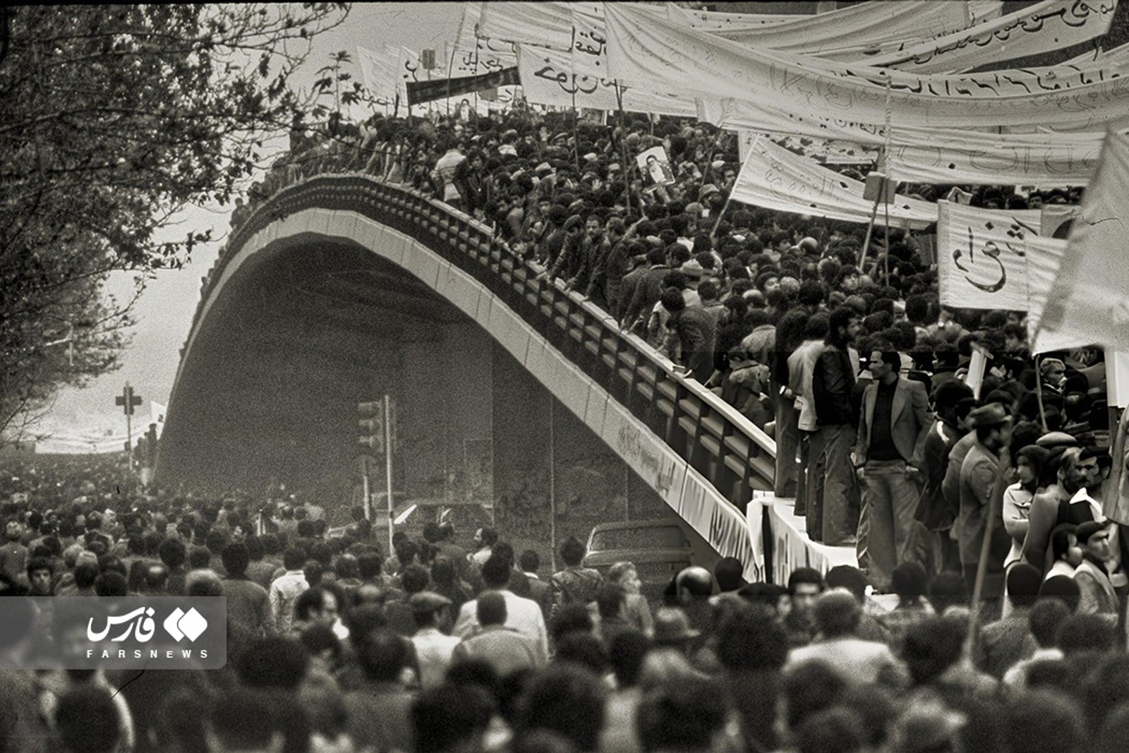 Iranians celebrating the collapse of the Pahlavi dynasty and the establishment of the Islamic Republic in 1979