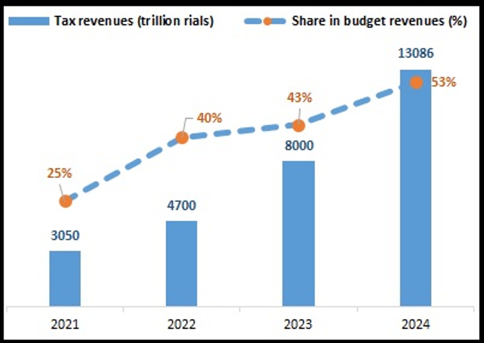 Over the last three years, the budget’s tax revenues have increased by more than 162%. For the current fiscal year, the government aims to collect over 13,000 trillion rials in tax revenues, a 62% increase compared to the previous fiscal year. In simple terms, this represents a 326% increase in tax revenues compared to 2021. Consequently, the share of tax revenues in the government budget has risen from 25% to 53% during this period.