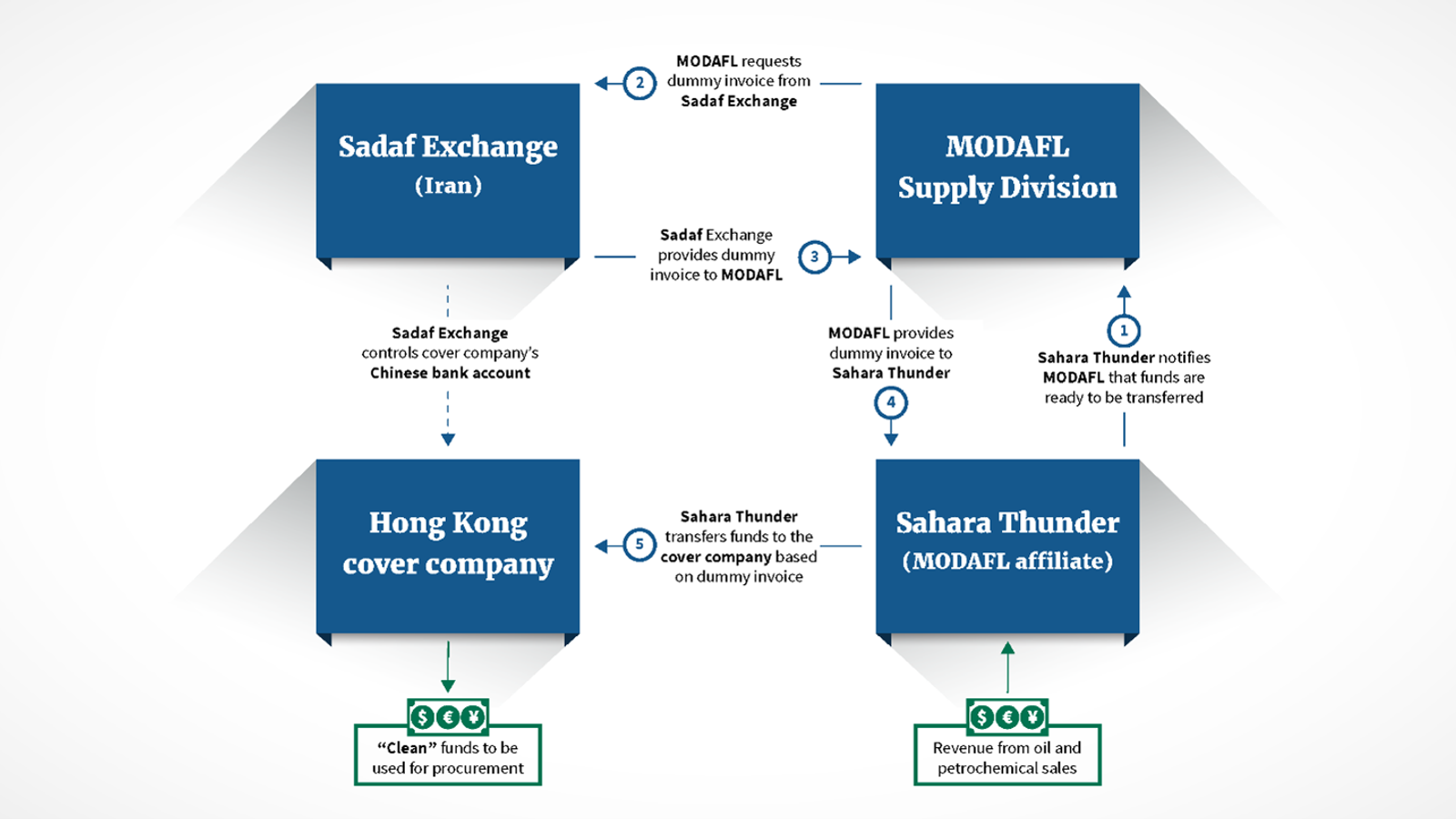 According to the statement, "networks of Iranian exchange houses and dozens of foreign cover companies under their control enable MODAFL and the IRGC to disguise the revenue they generate abroad that is then available to use for a range of MODAFL and IRGC activities, including the procurement and development of advanced weapons systems such as unmanned aerial vehicles."