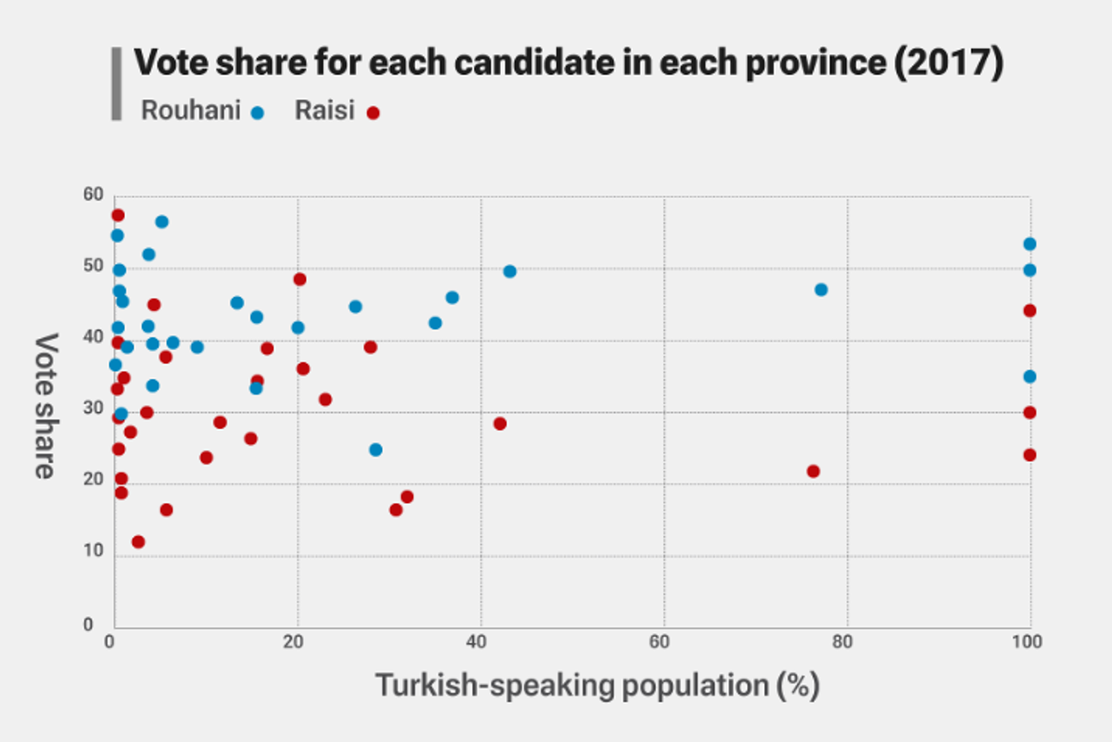 To underline the crucial role of the Azari (Turkish) speaking Iranians in the second round of the election, we can compare the results with that of the 2017 presidential election –where Hassan Rouhani tried to attract the ethnic vote.