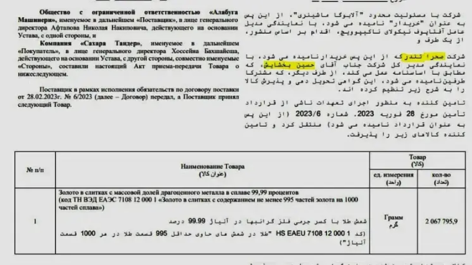A leaked document shows that a company affiliated with the armed forces of the Islamic Republic has conducted its drone transactions with Russia using gold instead of currency. (Undated)