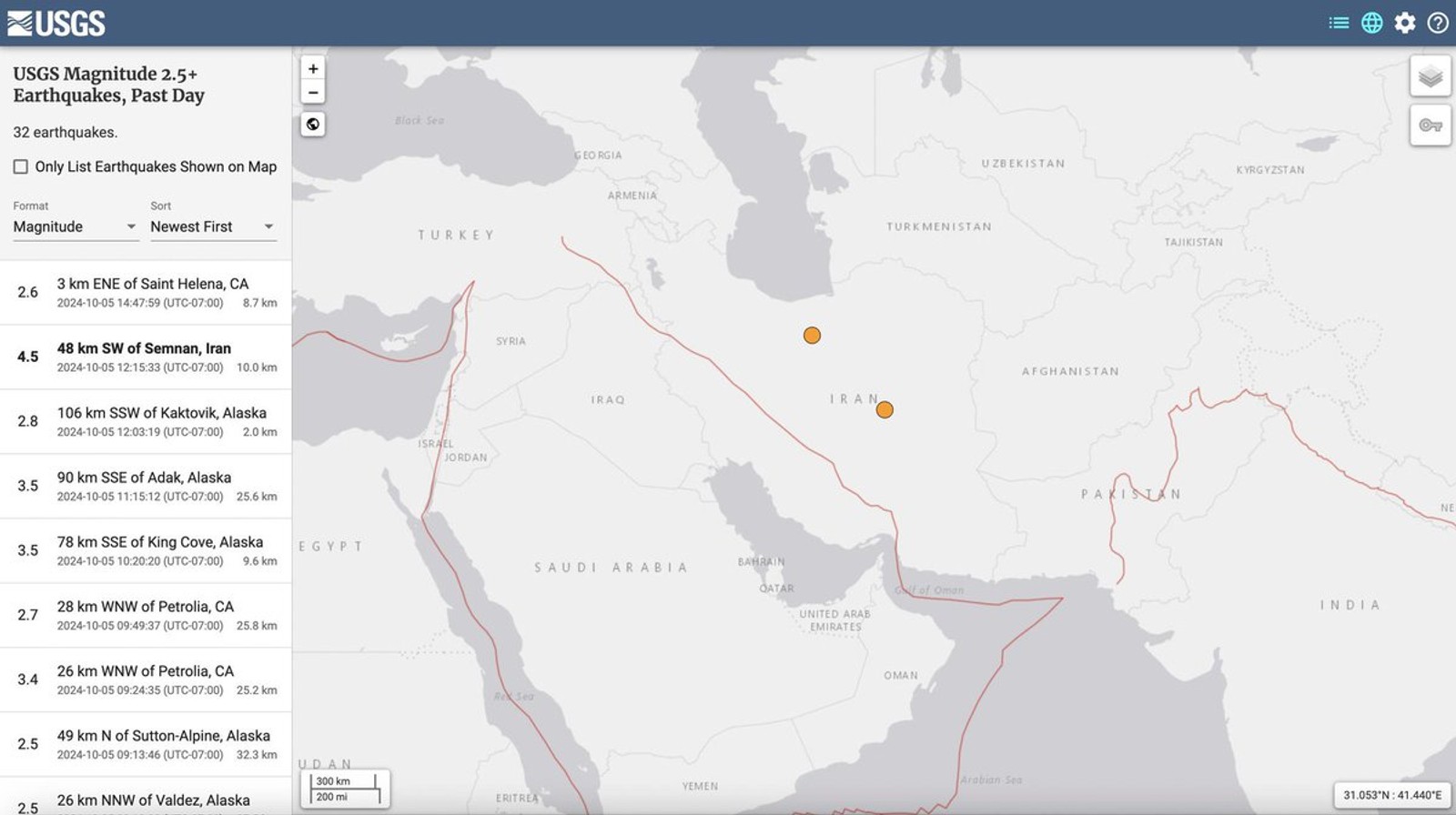 US Geological Survey's map showing the epicenter of the quake in Kavir Desert