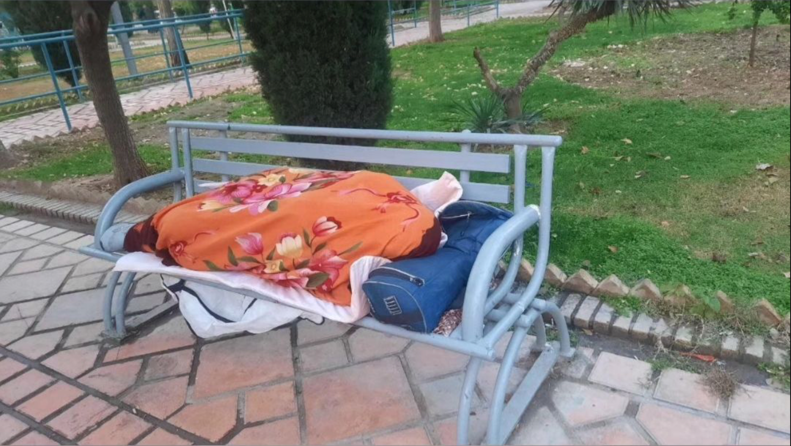 An image circulating on social media shows a retiree who traveled from another province and slept overnight in a Tehran park to attend the protest.