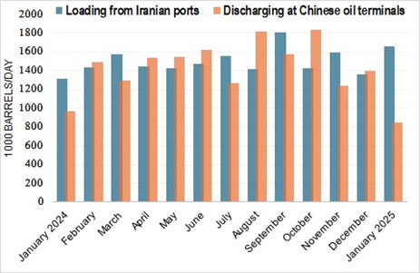 Data from Kpler shows that Iran’s oil deliveries to China fell below 850,000 barrels per day in January, compared to over 1.8 million barrels per day in October last year.