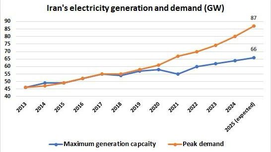 While Iran’s installed power generation capacity is officially around 62,000 MW, its failure to meet even current demand suggests a deeper crisis—most likely a fuel shortage for thermal power plants, which supply over 90% of the country’s electricity.
