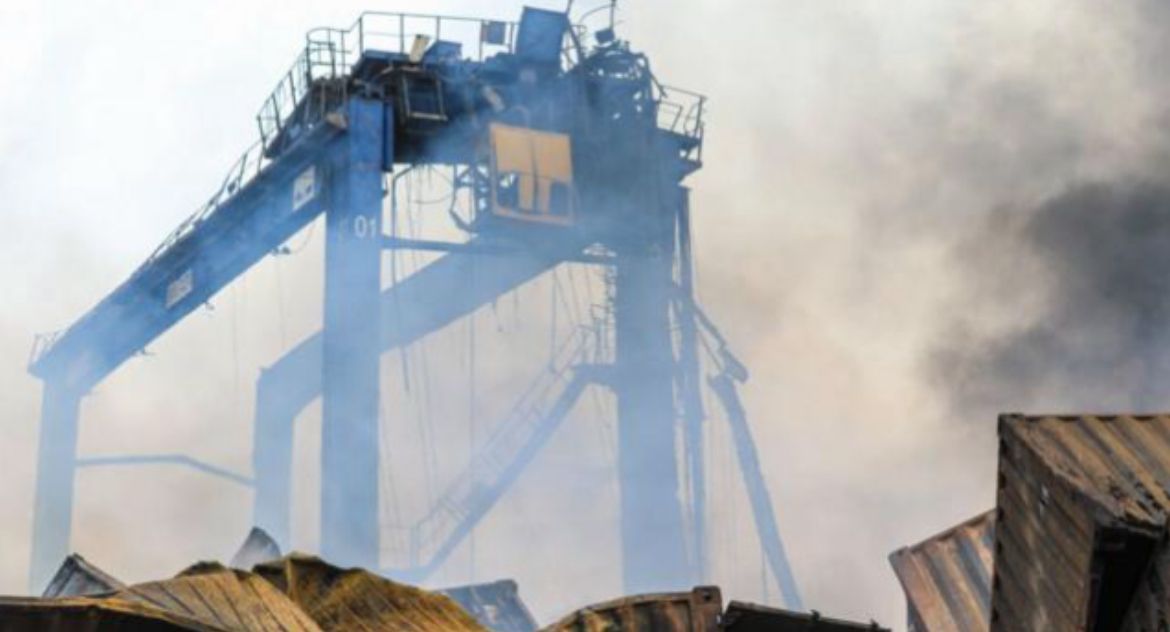 Containers burning at Rajaei port, Bandar Abbas (April 2025)