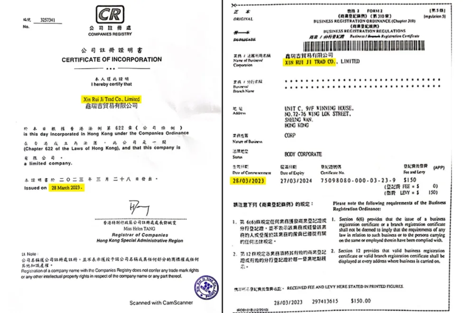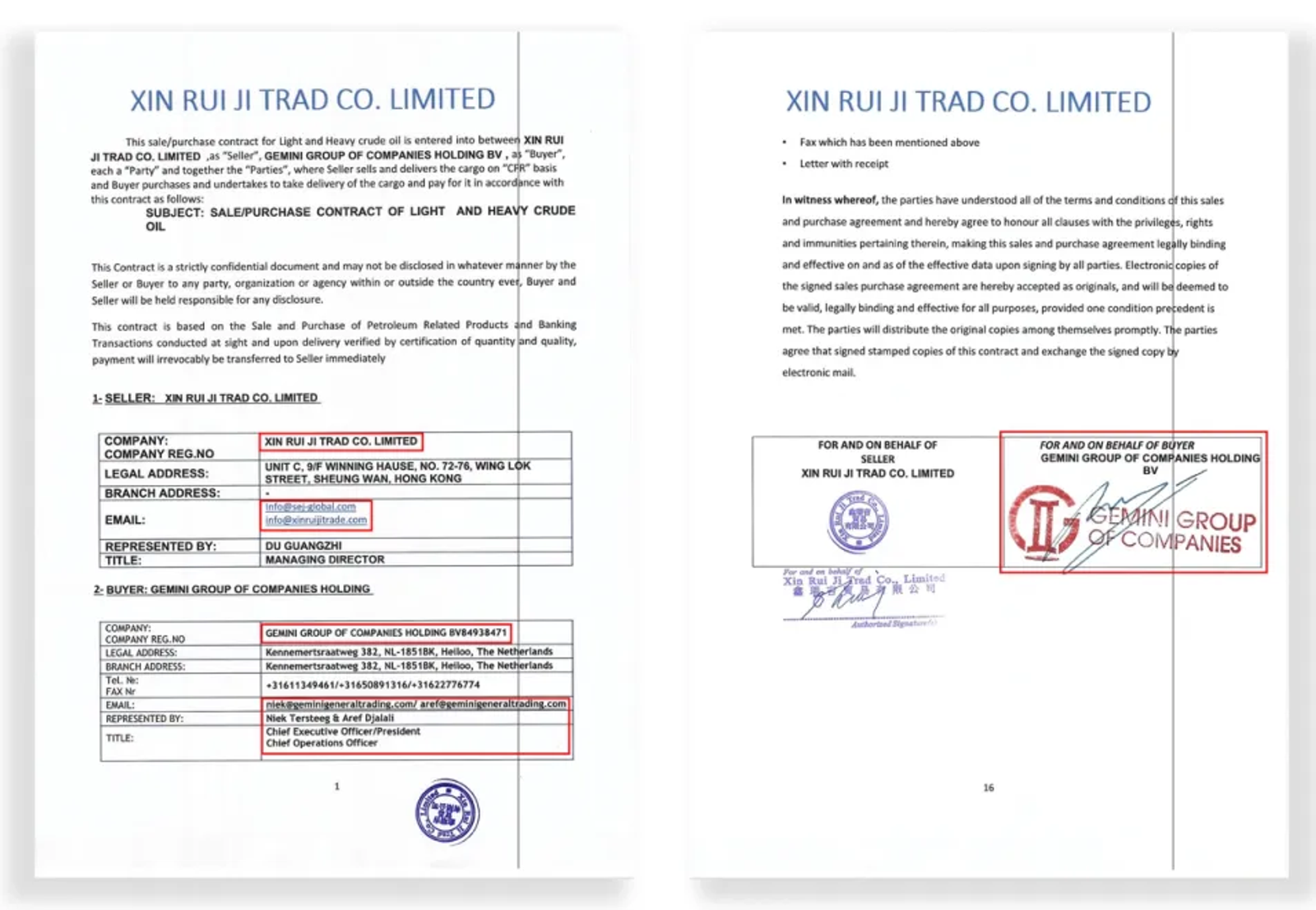 The same contact information and domain used by Sepehr Energy appeared on Xin Rui Ji contracts, pointing to a unified operation.