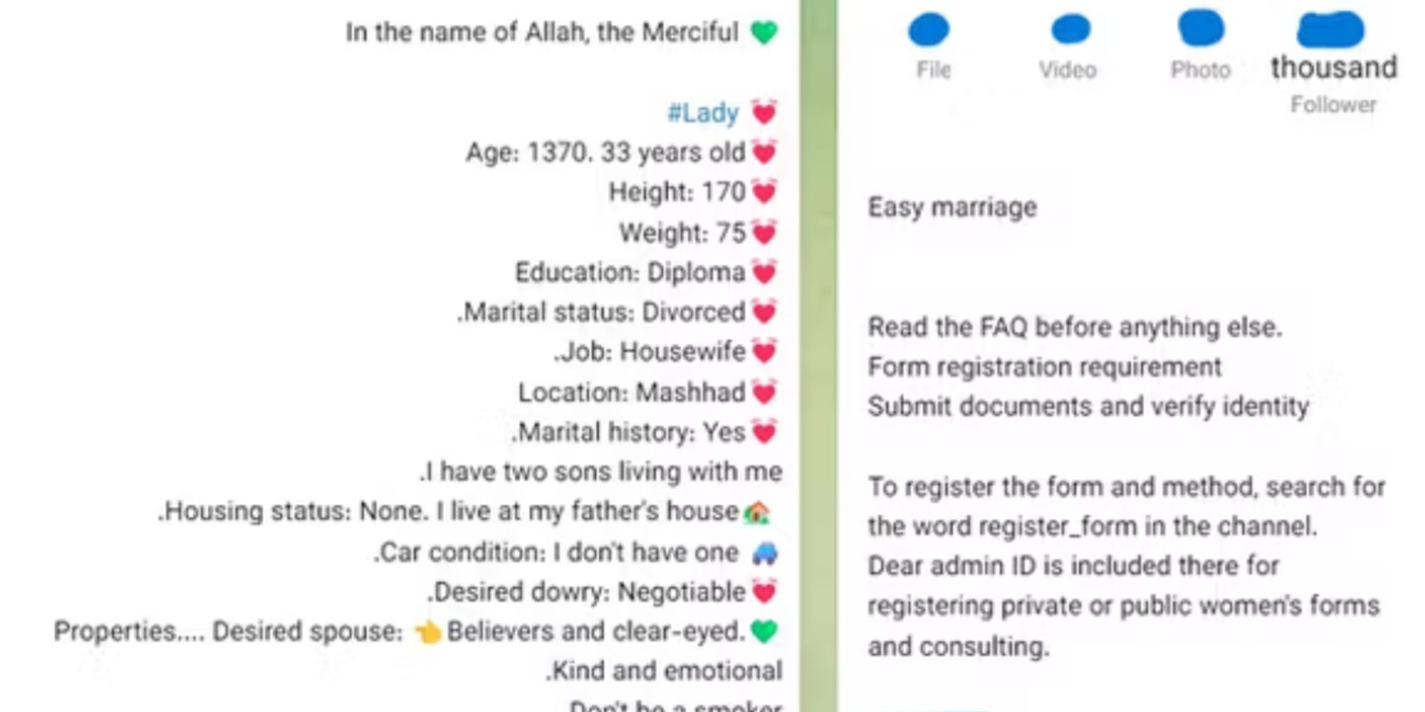 In one case in Iran International's investigation, a woman arranged to meet at a metro station in west Tehran after initial negotiations, with two rounds of fees—labeled as 'identification' and 'dowry'—required as conditions to be paid after the meeting.