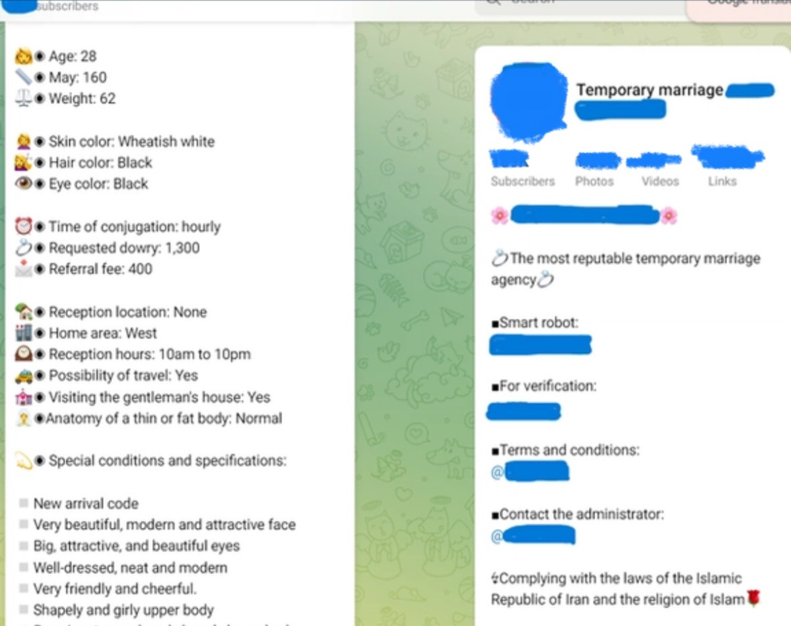 Listings often include physical traits, education level and place of residence. Some promise “virginity guaranteed.” Longer-term packages come with varying price tags—often higher for women labeled as educated or Tehran-based.