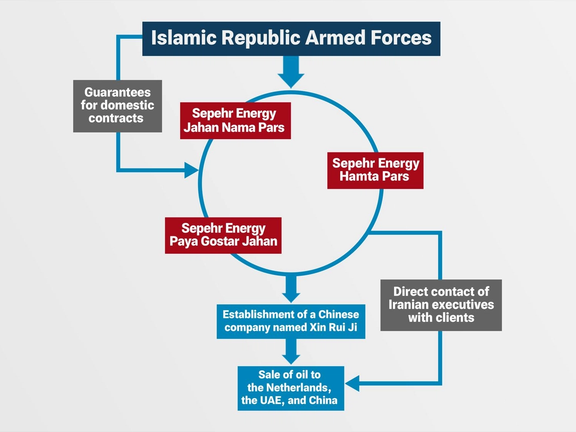 Business documents and emails obtained by Iran International reveal a layered network of shell companies used to mask the military links and channel the sanctioned oil through foreign intermediaries.