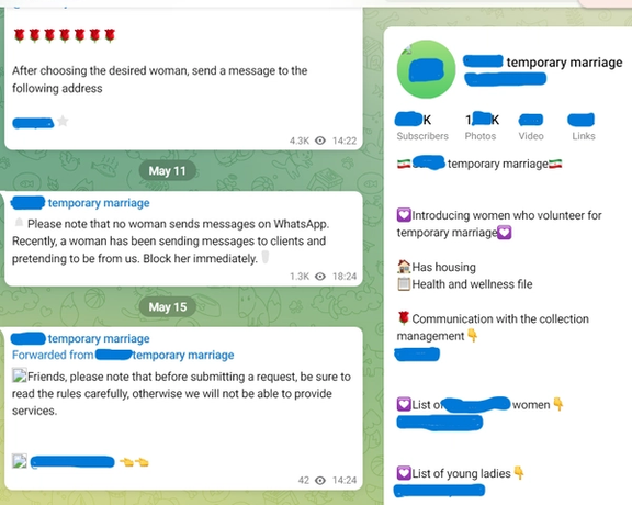 Listings often include physical traits, education level and place of residence. Some promise “virginity guaranteed.” Longer-term packages come with varying price tags—often higher for women labeled as educated or Tehran-based.
