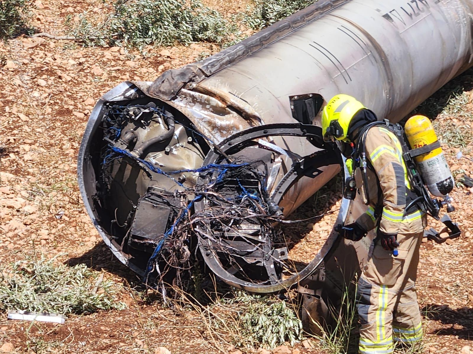 In photos: Israeli firefighters inspect ballistic missile fragment in Galilee