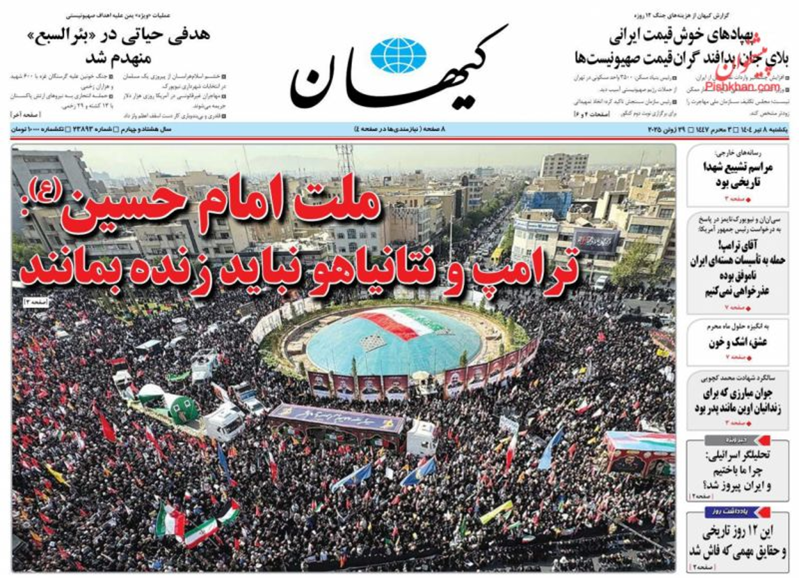 “The nation of Imam Hussein, in the epic funeral, declared war against America and Israel and made clear that Trump and Netanyahu should not remain alive," the hardline paper said in an article on the funeral processions held in Tehran for senior military commanders killed by Israel.