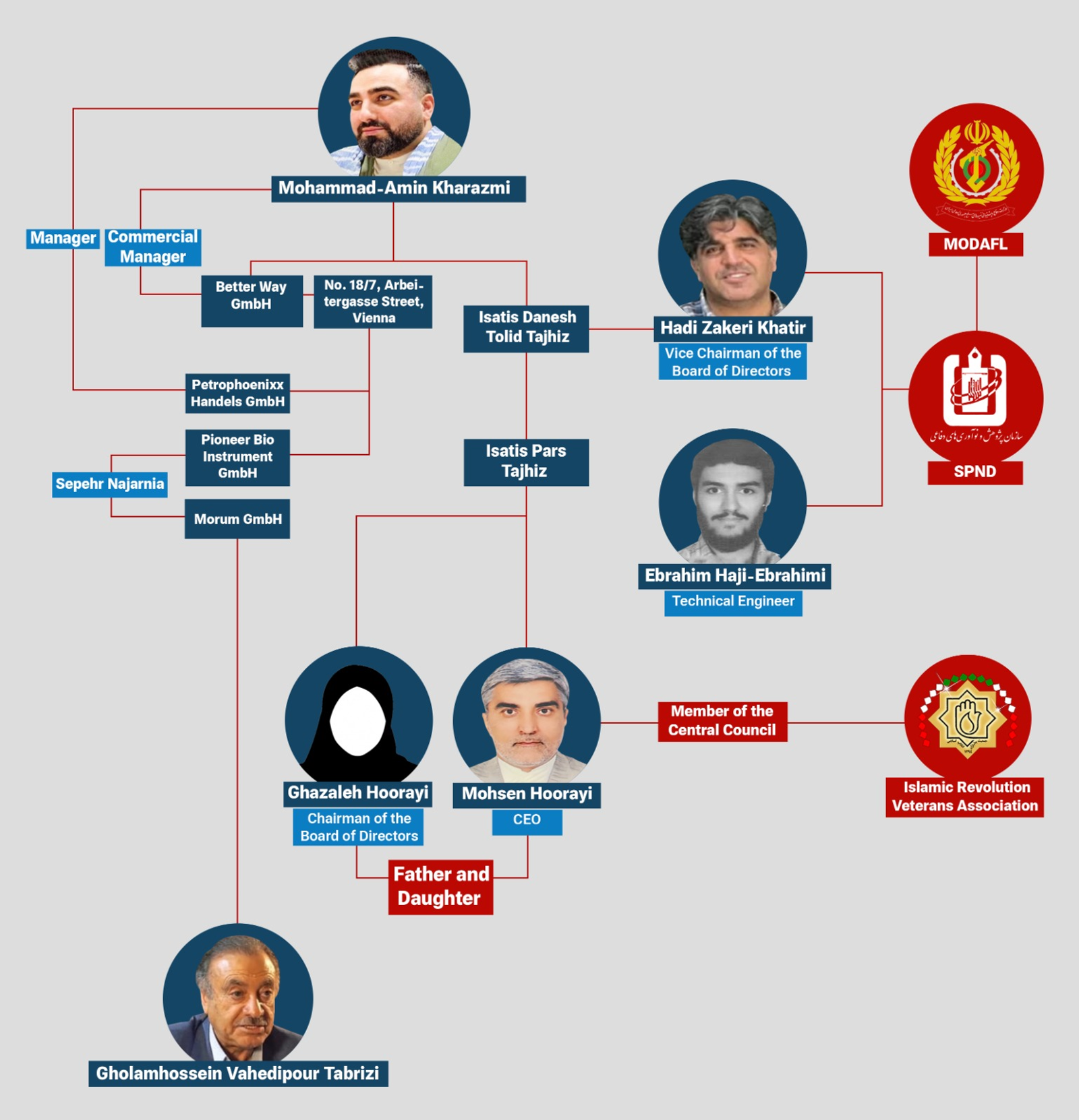 Inside Iran, the procurement effort is anchored by companies operating under the Isatis name. Corporate and academic records link two SPND personnel, Hadi Zakeri Khatir and Ebrahim Haji-Ebrahimi, to Isatis Danesh Tolid Tajhiz, one of the group’s entities.