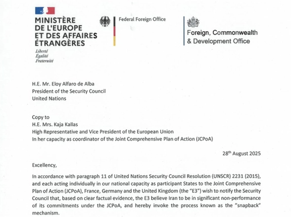 "The E3 believe Iran to be in significant non-performance of its commitments," it added. "Since 2019 and as of today, Iran has increasingly and deliberately ceased performing its JCPoA commitments."