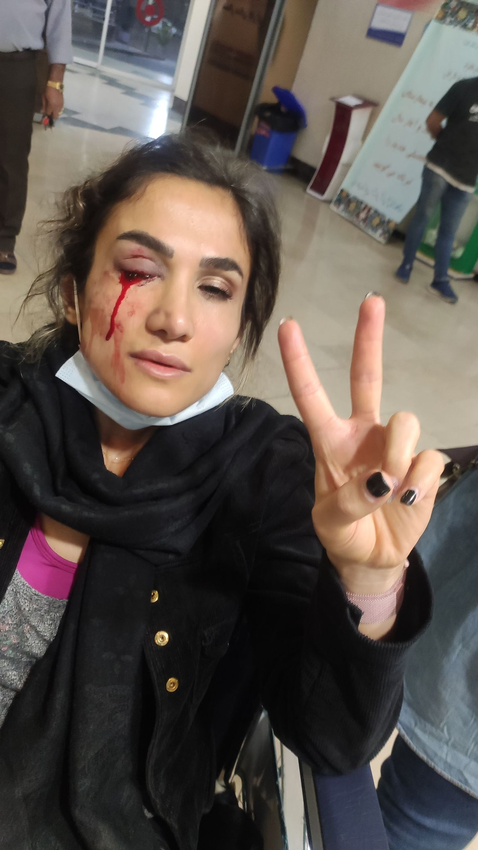 Shahinkar and her mother joined a Tehran protest on Oct. 15, in which security forces shot her in the face with non-lethal munitions, leaving her blind in one eye.
