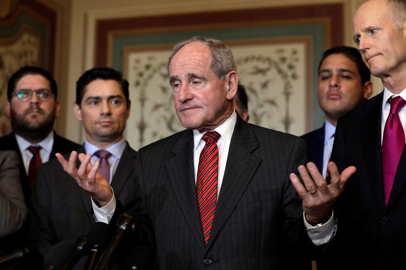 US Senate Foreign Relations Committee chairman Jim Risch (R-ID) talks to the media on Capitol Hill in Washington, January 30, 2019.