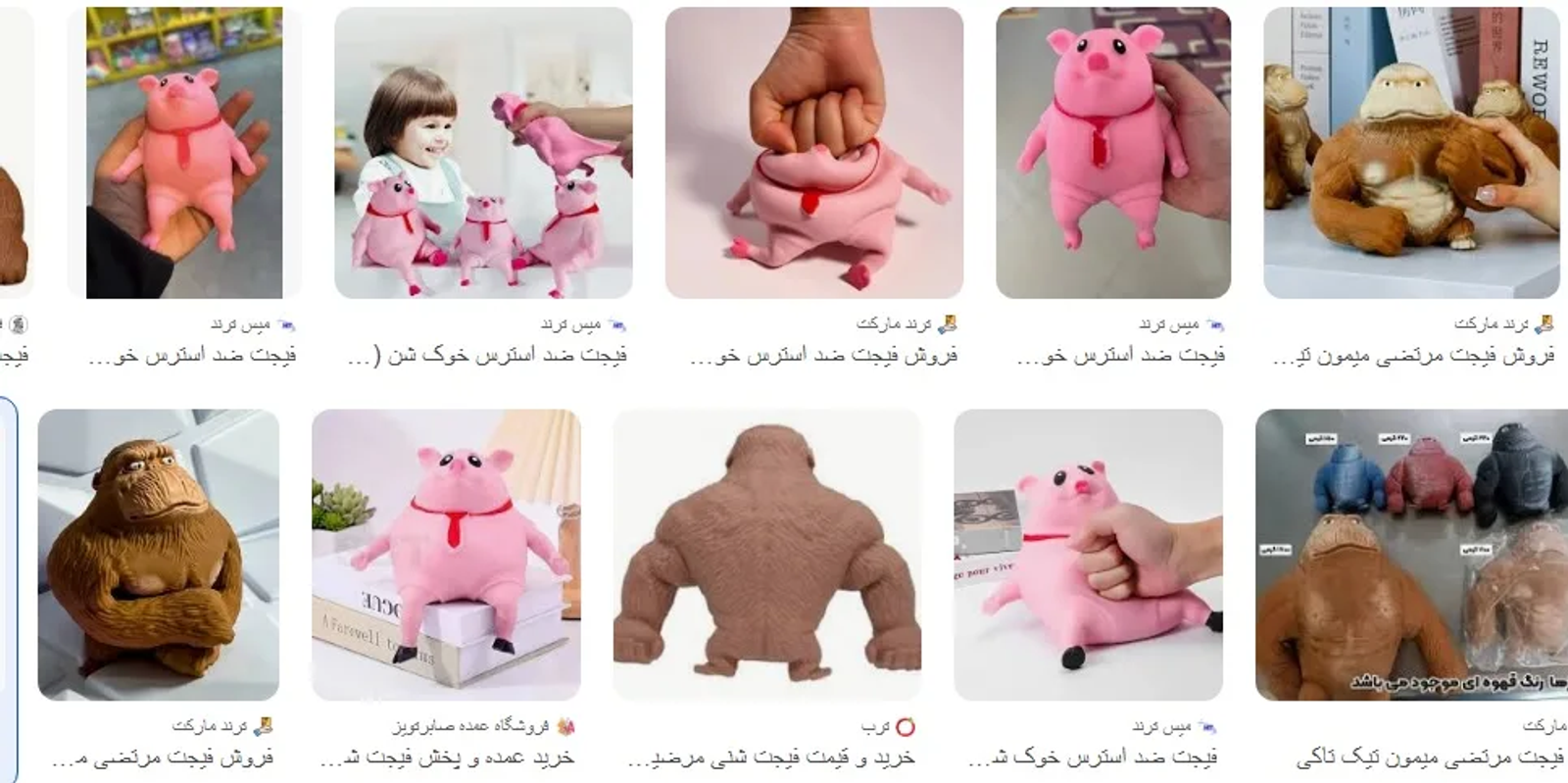 The dolls, marketed under names such as Morteza and Marziyeh, are designed as stress-relief toys shaped like animals including gorillas, monkeys, or pigs.