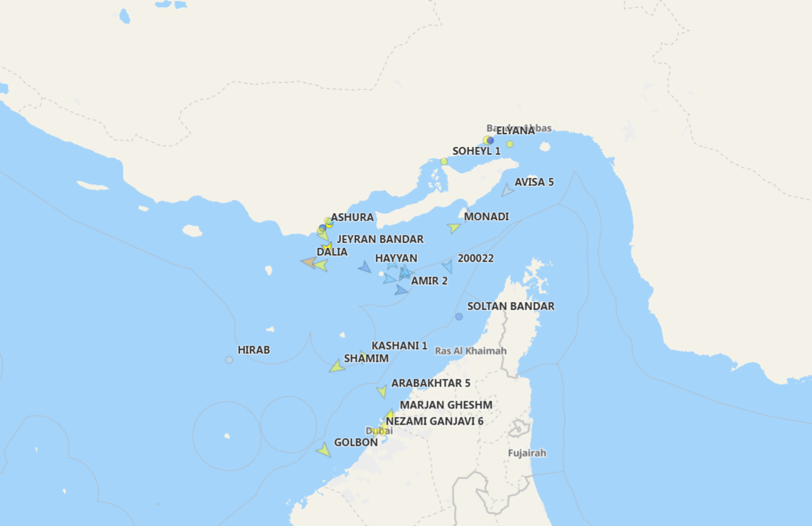 Iranian-flagged vessels are now transmitting properly over AIS without spoofing. Screengrab from MartineTraffic.org