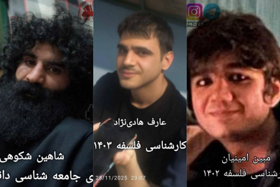 Mobin Aminian, an undergraduate student in chemical engineering; Shahin Shokouhi, a PhD student in sociology; Aref Hadi-Nejad, an undergraduate student in philosophy; and Mani Eidi, an undergraduate student in philosophy, were arrested outside the University of Tehran campus in downtown Tehran.